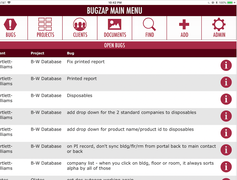 We’ve been given permission by our wonderful clients to showcase these screenshots from past FileMaker, Web, database and iOS apps.